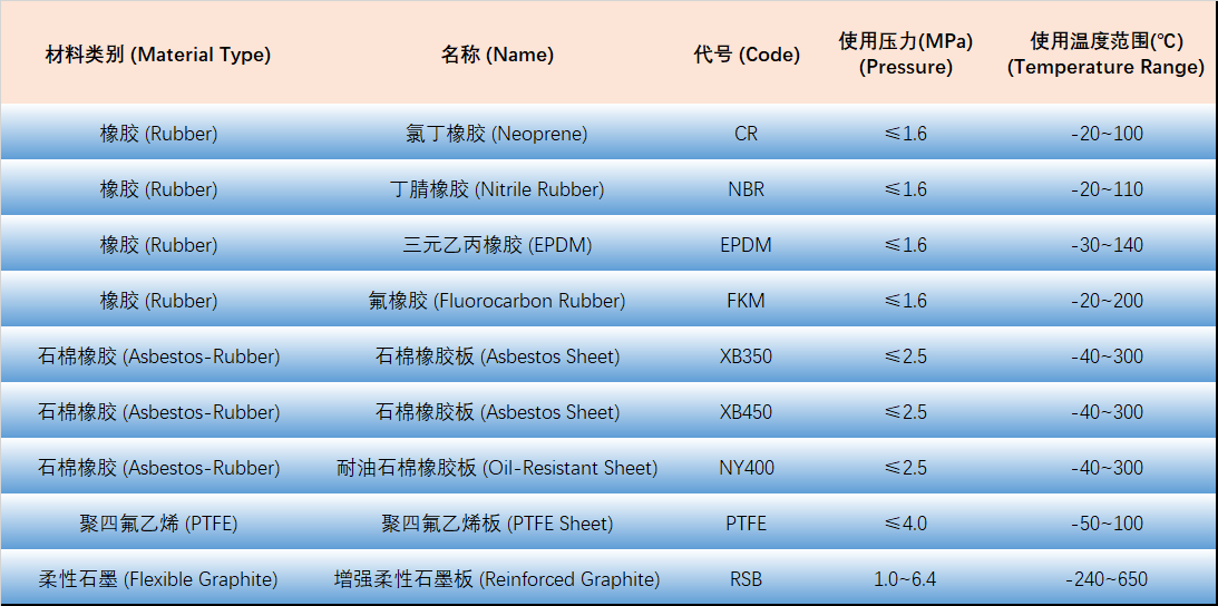 1. Classification of Gasket Materials and Basic Selection Principles